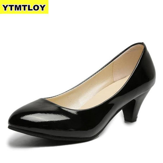 2020 Women Pumps Black High heels Lady Patent leather Thick Single pointed Shoes