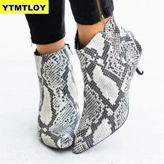 Hot Women's Ankle Boots Snake Leopard Pointed Toe Ladies Chunky Thin High heel Side zipper Female Shoes Woman Footwear Plus35-43